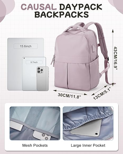 Zaino per laptop da donna Zaino da lavoro per fitness da uomo Zaino casual Zaino Piccolo zaino da viaggio Adatto per viaggi in aereo Zaino leggero per insegnanti universitari Zaino da donna viola