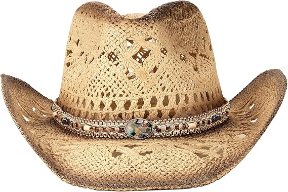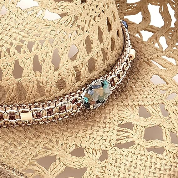Cappelli da cowboy in paglia da uomo e da donna, cappelli da sole intrecciati da cowgirl, cappelli da cowboy western con due cinturini decorativi